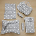 FOUR PILLOWS ,MATTRESS, COMFORTER, SLEEPING BAG & MOSQUITO NET MATTRESS (LENGTH 29 INCHES WIDTH 19.5 INCHES) SLEEPING BAG (LENGTH 25 INCHES WIDTH 13.5 INCHES). COMFORTER (LENGTH 40 INCHES WIDTH 28.5 INCHES) MOSQUITO NET (LENGTH 26.5 INCHES WIDTH 17.5 INCHES).