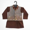 WG - 3 Pieces - Wash N Wear - Waist Coat Kurta Shalwar - Brown - Floral Pattern (0-6 Months)
