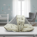 Mosquito net with thick polyester filling in mattress Stuff - CottonDimensions - Length - 30, Width - 17.5 inchesAge suitability - 0 to 6 months Protection from mosquito With pillow