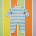 Baby Romper cotton jersey zipper baby sky blue white stripes