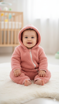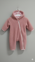 Warm & cozy Baby Romper hooded fur pink