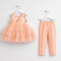 Fancy - 2 Pieces - Frock Set - Peach - Flowers - 0141 - (6-12 Months)