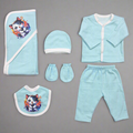 Stuff - Fleece Age Suitability - 0 to 3 Months Approx. Contains : 1 : Full Sleeves Open Shirt 2 : Trouser 3 : Bib 4 : Cap 5 : Hooded Wrapping Sheet 6 : Hanger Starter Set  For Mild & Extreme Winters...
